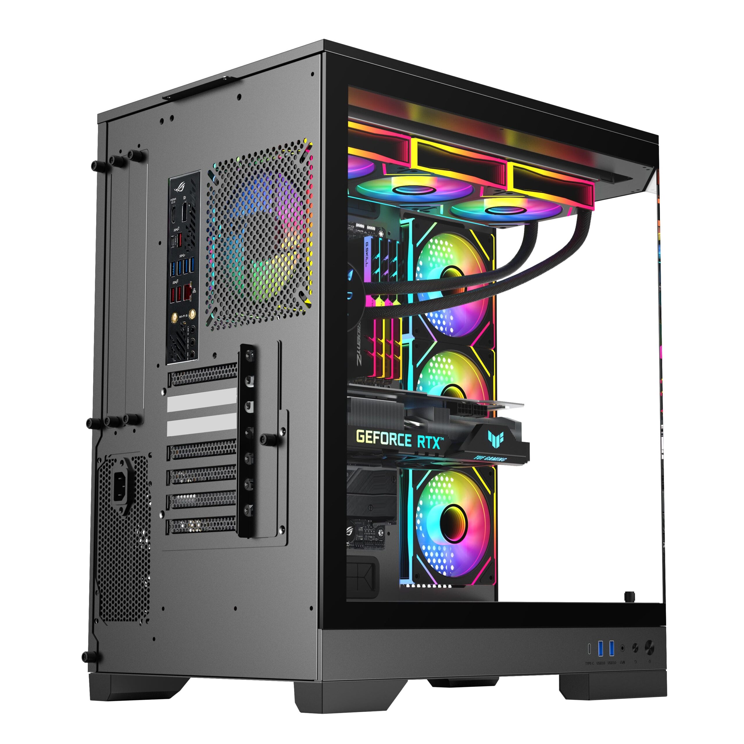 - Optimized Cooling: Supports up to 10 fans, 360mm radiators on the top and front, and two 120mm fans in the PSU shroud.