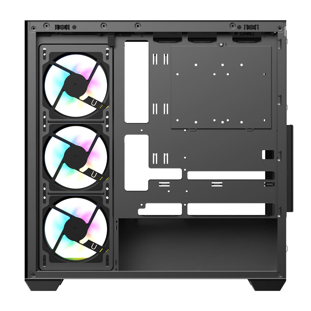 - Pre-Installed ARGB Fans: Comes with four ARGB fans (1600 RPM) and an ARGB/PWM fan hub for lighting control and motherboard sync.