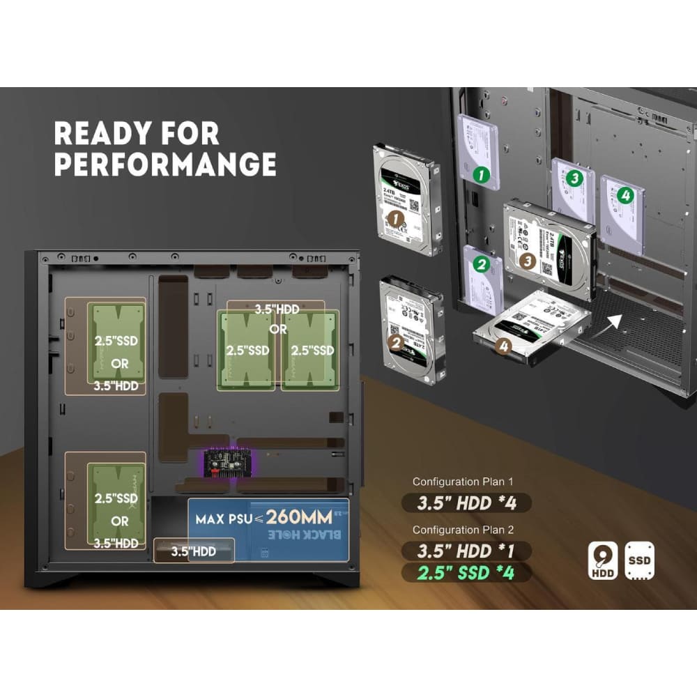 - Separate HDD and PSU slots space , good heat dissipation design