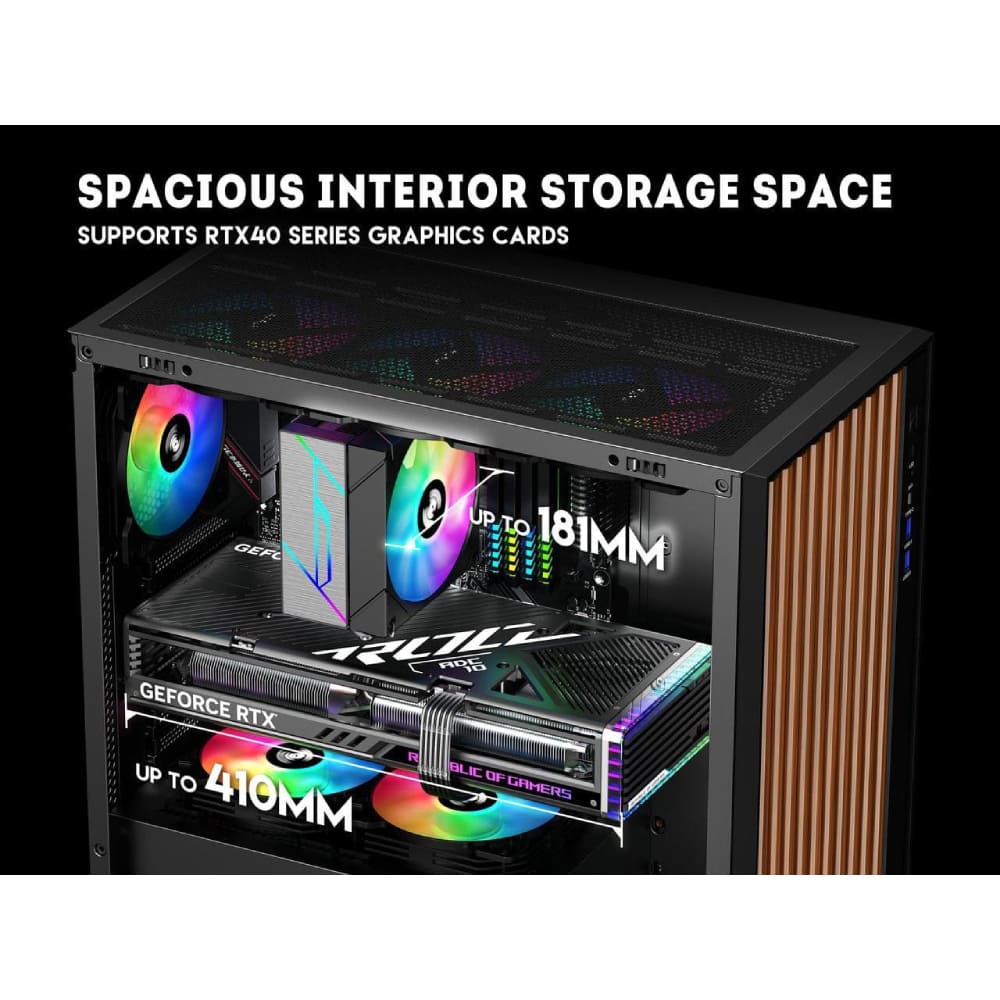 - 【New Trend BTF Back Plug Motherborad Design】The PC Case Compatible With Most Mainstream Hardware In The Market,Support VGA Card Up To 410mm,Support CPU Cooling Height Up To 181mm,Support Top Mounting Up To 360mm Liquid Rad.